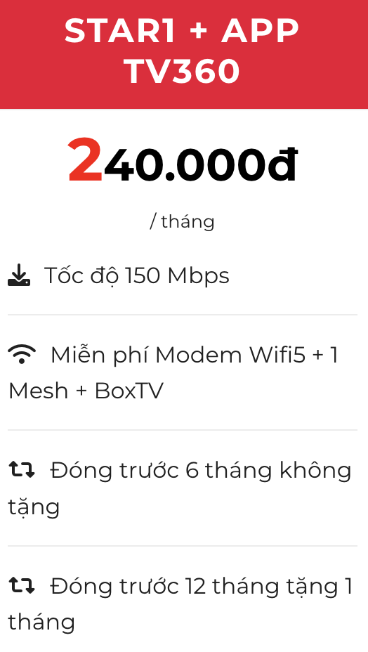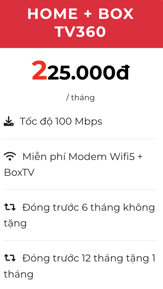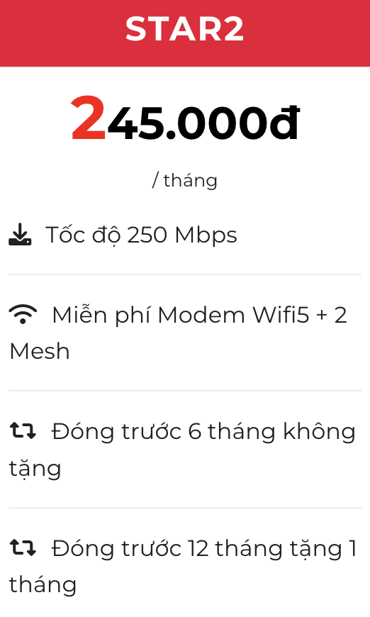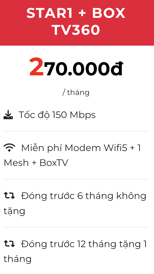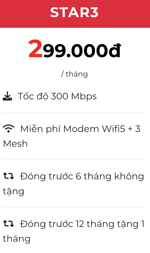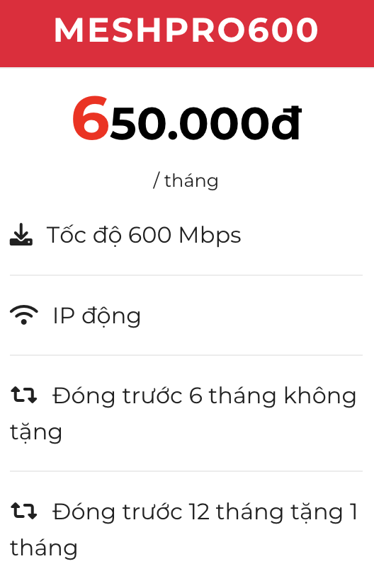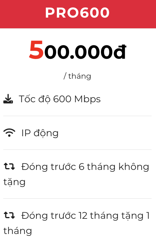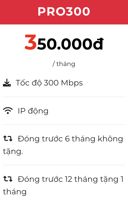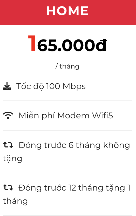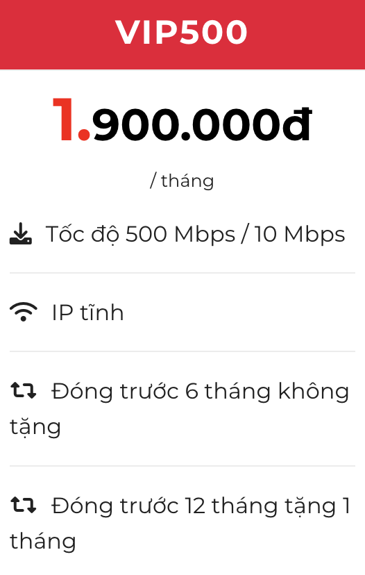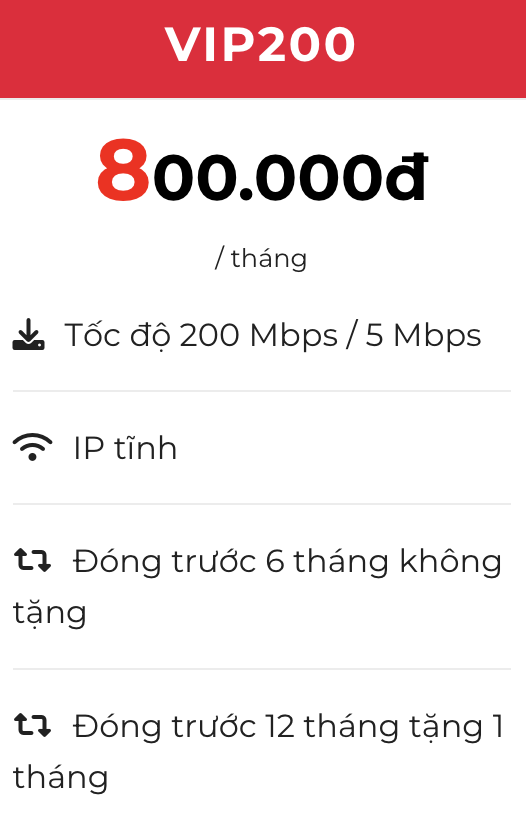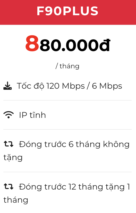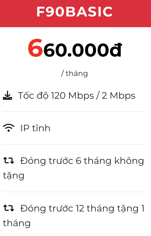 Các gói cước FTTH cho doanh nghiệp của Viettel cung cấp có tốc độ từ 200Mbps – 1000Mbps với các mức giá từ 350.000đ. Với sự đa dạng và linh hoạt về tính năng cũng như mức giá tốt nhất trên thị trường của các gói cước này, doanh nghiệp có thể lựa chọn gói cước đáp ứng phù hợp nhất với nhu cầu sử dụng của đơn vị.